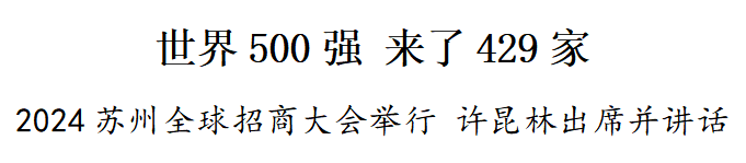 4月26日,2024苏州全球招商大会举行。大会以“投资苏州,赢得未来”为主题,吸引了429家世界500强企业云集苏州。总投资3719.5亿元的367个项目集中签约。省委副书记、省长许昆林出席并讲话。省委常委、苏州市委书记刘小涛出席并致辞。省政府秘书长吕德明出席。市委副书记、市长吴庆文作主旨推介,市人大常委会主任李亚平,市政协主席朱民出席。