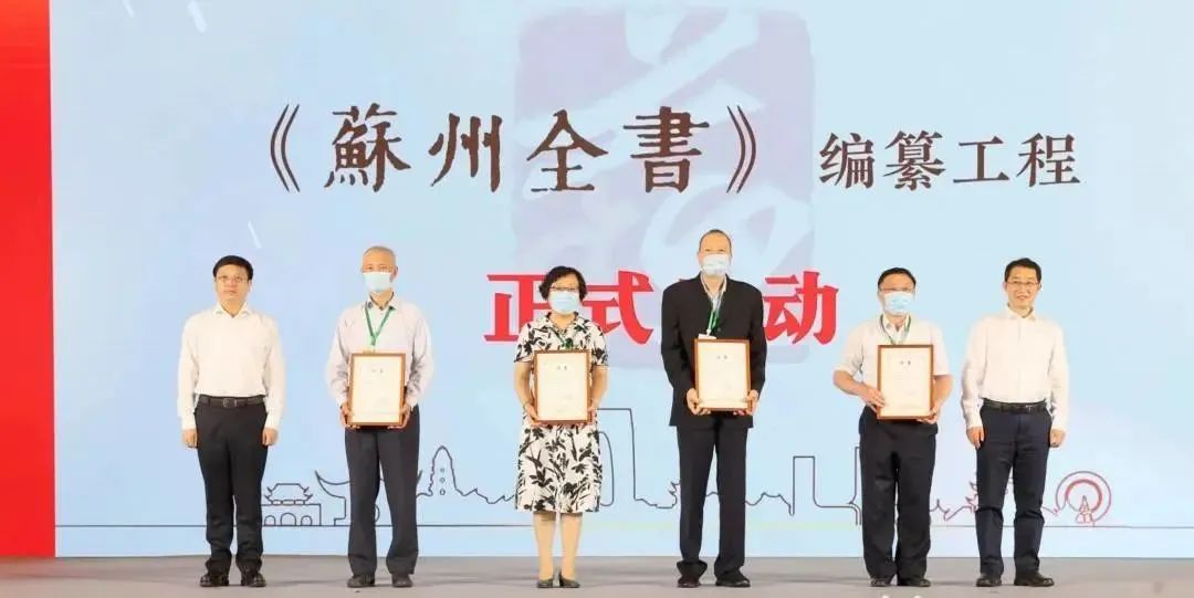开幕式上,曹路宝、吴庆文共同启动《苏州全书》编纂工程,并向《苏州全书》学术顾问代表、编委会领衔专家颁发聘书。