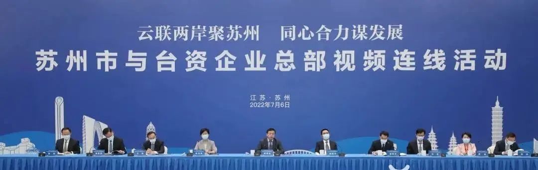 云联两岸聚苏州,同心合力谋发展。7月6日,省委常委、市委书记曹路宝,市委副书记、市长吴庆文视频连线部分台资企业总部负责人,代表市委市政府向广大台商台企为苏州经济社会发展作出的重要贡献表示感谢,希望进一步深化交流合作、促进共赢发展。国台办经济局副局长、一级巡视员陈斌华,省台办主任练月琴出席活动并致辞。