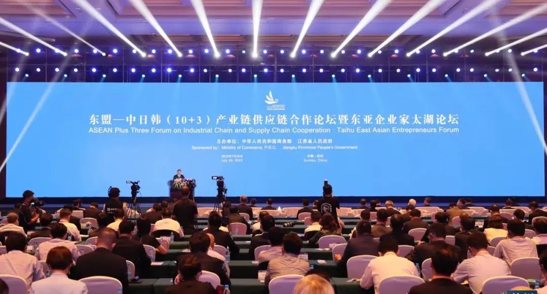 7月29日,东盟—中日韩(10+3)产业链供应链合作论坛暨东亚企业家太湖论坛在苏州举行。国务院副总理胡春华发表视频致辞。