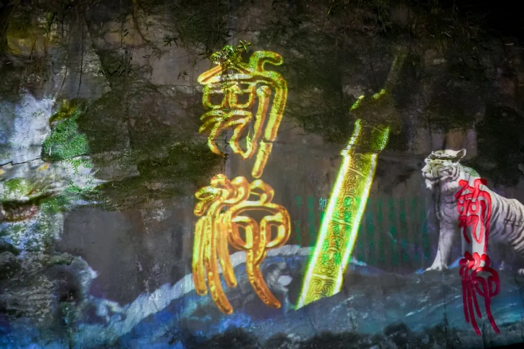 《虎阜传奇》灯光秀,通过最新的全息技术、引人入胜的情节、精彩的互动表演,将虚拟影像、真实人物、自然环境三者有机结合。