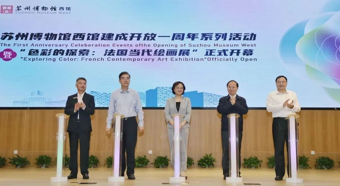 74万人次观众,2500场讲解服务,10个临时特展,351场教育活动,122种文创产品……9月的苏州,天高气爽,惠风和畅,9月29日,在建成开放一周年之际,苏州博物馆西馆交出的这份成绩单很亮眼。“色彩的探索:法国当代绘画展”同期开启。苏州市委常委、宣传部部长金洁,副市长查颖冬出席活动。