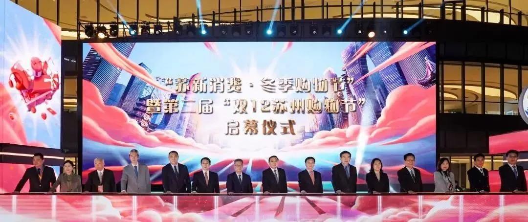 启幕仪式上,费高云、曹路宝、王选庆、黄澜、吴庆文等共同启动“苏新消费·冬季购物节”暨第二届“双12苏州购物节”。