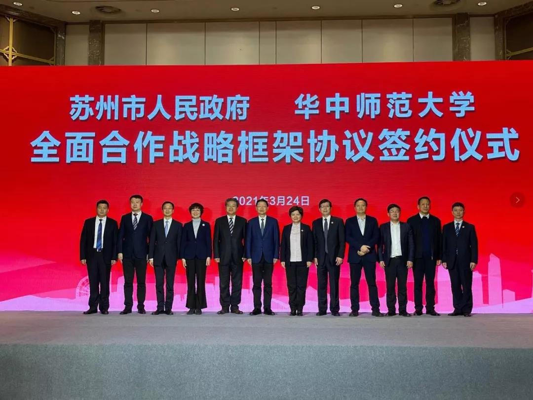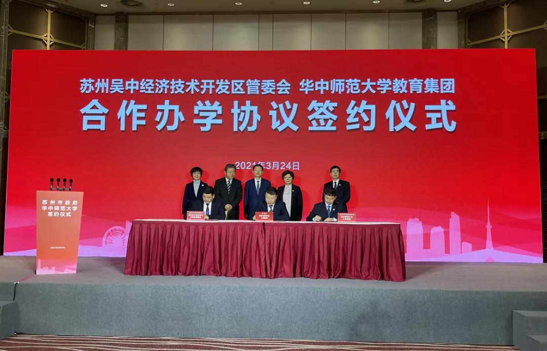 3月24日,苏州市人民政府与华中师范大学签署全面合作战略框架协议,双方将在吴中区共建华中师范大学太湖中学(暂定名)。苏州市委副书记、市长李亚平,华中师范大学校长、党委副书记郝芳华共同见证签约。仪式上,苏州吴中经济技术开发区管委会与华中师范大学教育集团签订合作办学协议。