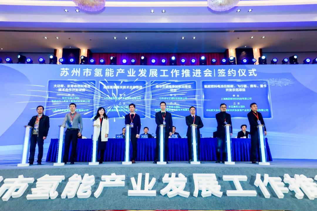 推进会现场,苏州市发改委主任凌鸣发布了《苏州市氢能产业发展白皮书》,苏州市工信局局长蔡剑峰重点解读了《苏州市氢能及燃料电池产业发展规划》。会上,共有28项氢能项目签约,其中院士专家团队合作项目4项,平台载体项目4项,产业化落地项目11项,企业合作项目9项。
