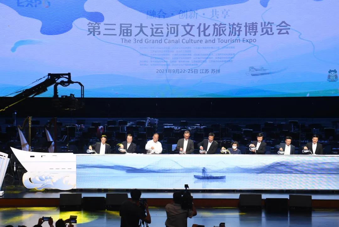 9月22日晚,第三届大运河文化旅游博览会在苏州拉开大幕,6个板块19项重点活动次第展开。第三届中国苏州江南文化艺术·国际旅游节同时开幕。江苏省人民政府副省长马欣,意大利驻沪总领事陈琪,西班牙驻沪总领事卡门·丰特斯,江苏省旅游协会会长张卫国,文化和旅游部政策法规司副司长周久财,江苏省政府副秘书长刘建,江苏省委宣传部副部长、省文明办主任葛莱,江苏省文化和旅游厅党组书记、厅长杨志纯,苏州市委副书记、代市长吴庆文等领导嘉宾共同启动开幕仪式。