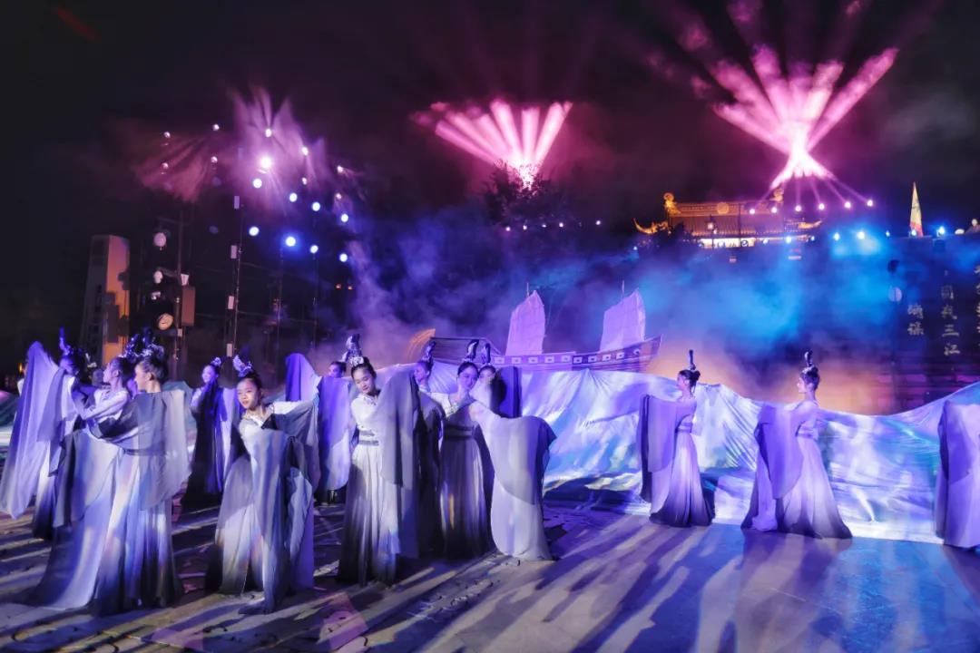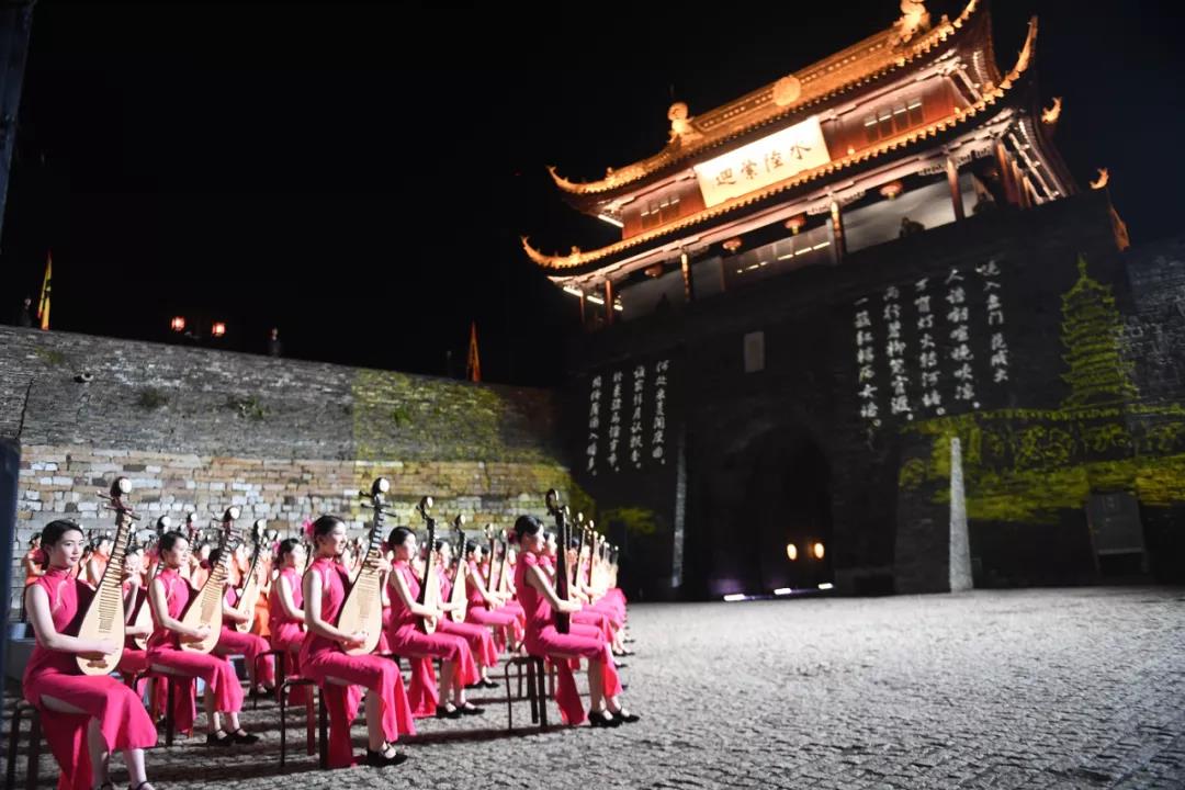 游船靠岸后,《千年姑苏·运起江南》开城秀随即于运河世界文化遗产点——盘门上演,以苏州评话与舞蹈、队列操、灯光、城墙投影等形式相结合,向众人讲述伍子胥与吴王率众建造姑苏城、开凿大运河的故事。穿过城门进入盘门景区,百人评弹表演《苏州好风光》正在上演,用“中国最美的声音”欢迎海内外嘉宾……