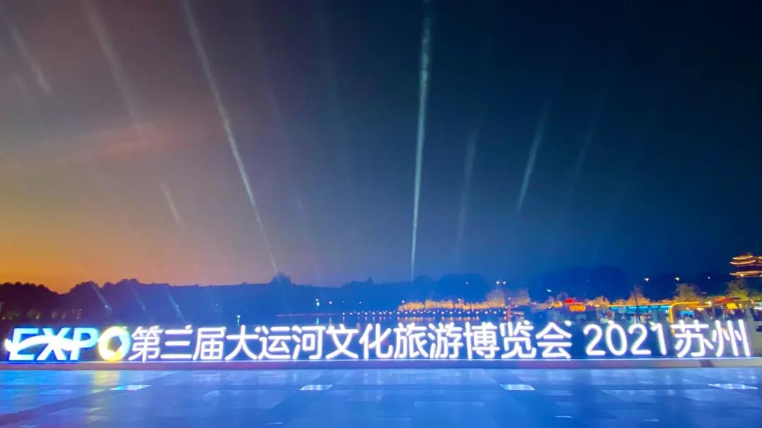 欣赏了夜色中分外迷人的盘门胜景,嘉宾们驱车前往苏州文化艺术中心,参加第三届大运河文化旅游博览会和第三届中国苏州江南文化艺术·国际旅游节的开幕仪式,并欣赏了开幕演出——交响组歌《大运河》。